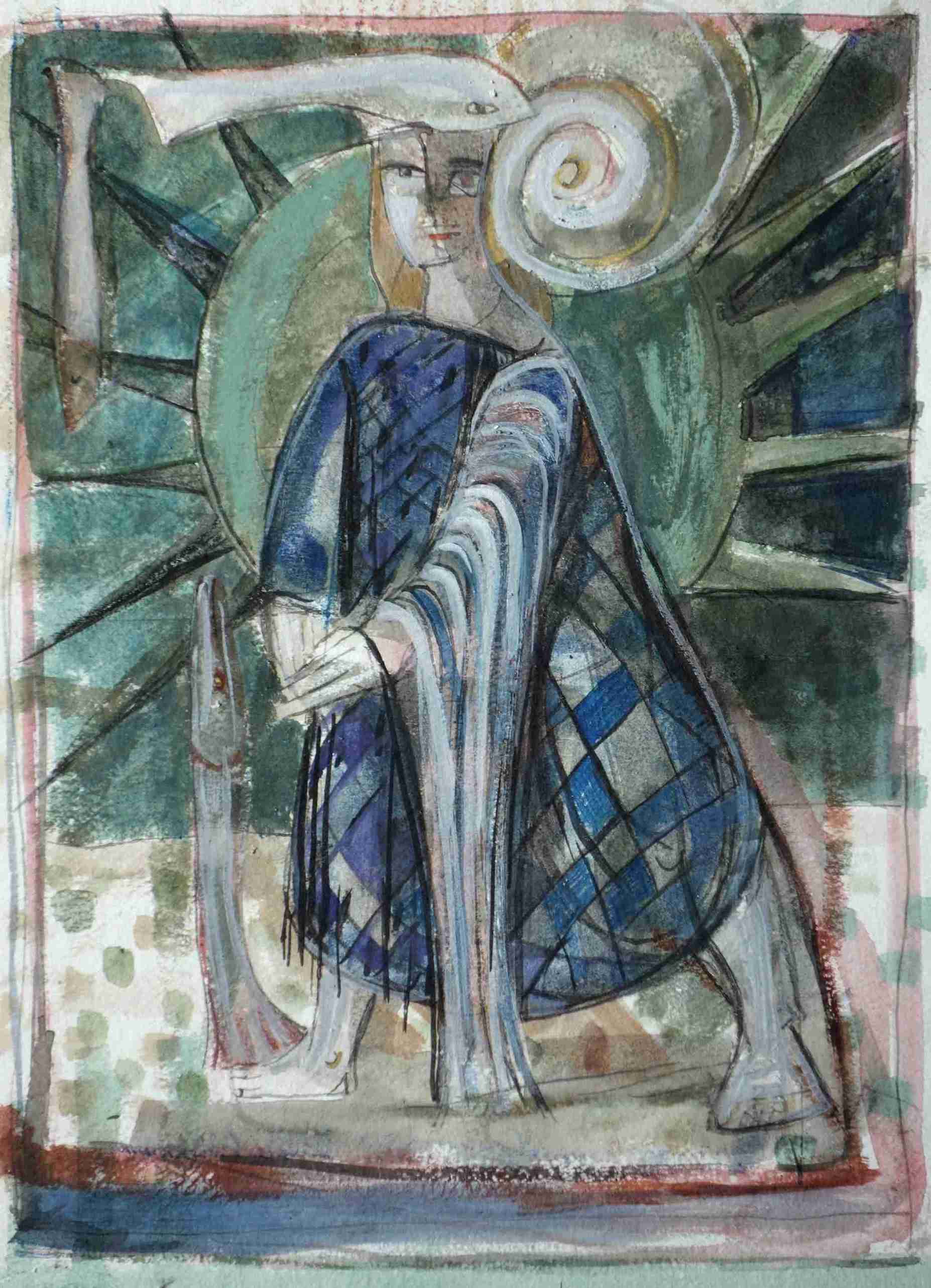 Papierarbeiten befindet sich ein Bild, das von mir begonnen,